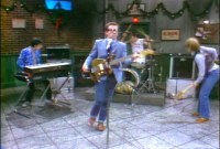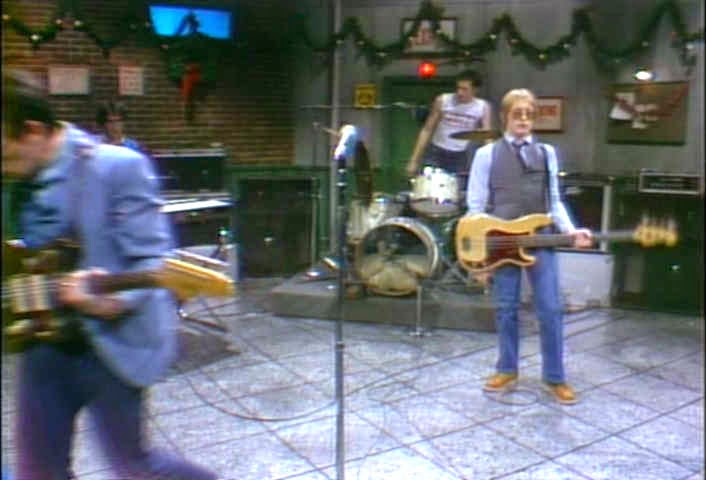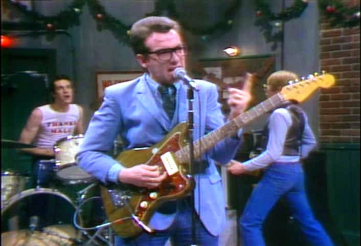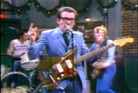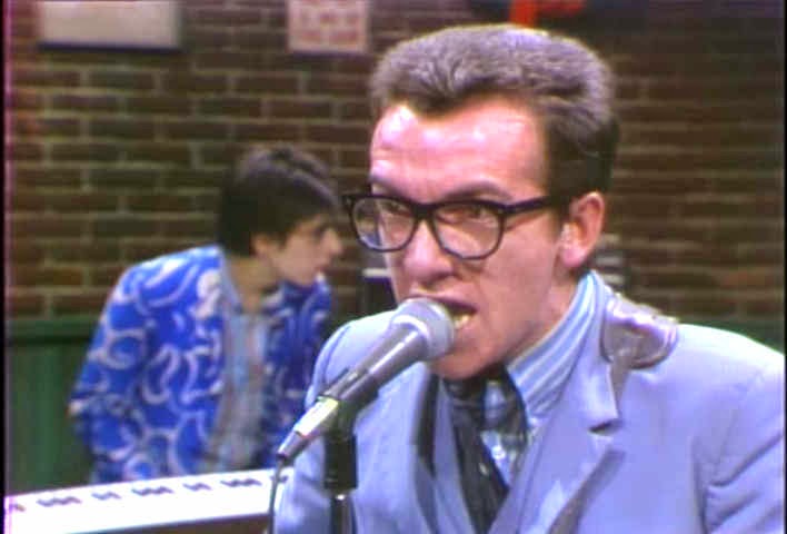 At the time that Elvis Costello and The Attractions, in the middle of a pulverising touring schedule that made their reputation as a fearsome live band, played the cult late night comedy show on NBC it was regarded as a daring and provocative response to Monty Python. Or at least a team of the US best and brightest comedy performers – Dan Aykroyd , John Belushi, Chevy Chase, Gilder Radner, Bill Murray et al. The shows passion for presenting musical acts that might not necessarily get airtime elsewhere gained it a reputation for being cutting edge – so Elvis and the razor sharp Attraction seemed a perfect fit.