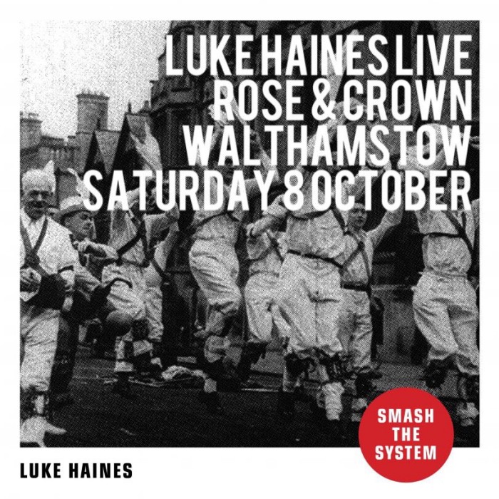 And so the evening wends its way to Walthamstow, a room above Ye Olde Rose & Crown pub where author, songwriter and indie misanthrope Luke Haines performed a set celebrating his new album ‘Smash The System’. Its was billed as an acoustic show but when he reached for his electric guitar halfway through the evening , shouts of ‘Judas!!’ filled the air which made Luke laugh, no doubt pleased to have such a musically literate audience. The kind that would laugh at lyrics like “The Incredible String Band were an unholy cat Sang like a couple of weasels trapped in a sack”, & would enjoy the ‘Yewtree Medley’ of ‘Bad Reputation’ (Glitter) and ‘Leeds United’ (Savile) that caused Ricky Gervais’ audience to tell him to fuck off as one voice. Mr Haines’ many projects and bands were all covered tonight with ‘New French Girlfriend’ and ‘Child Brides’ from the Auteurs, his tribute to 70’s wrestling greats, Baader Meinhof and Stanley Spencer. You want songs about using menstrual blood to make your garden grow, buying a bomber jacket, marauding gangs of Morris Men & Alphabetti Spaghetti? Then you really should been here tonight – we had a ball.
