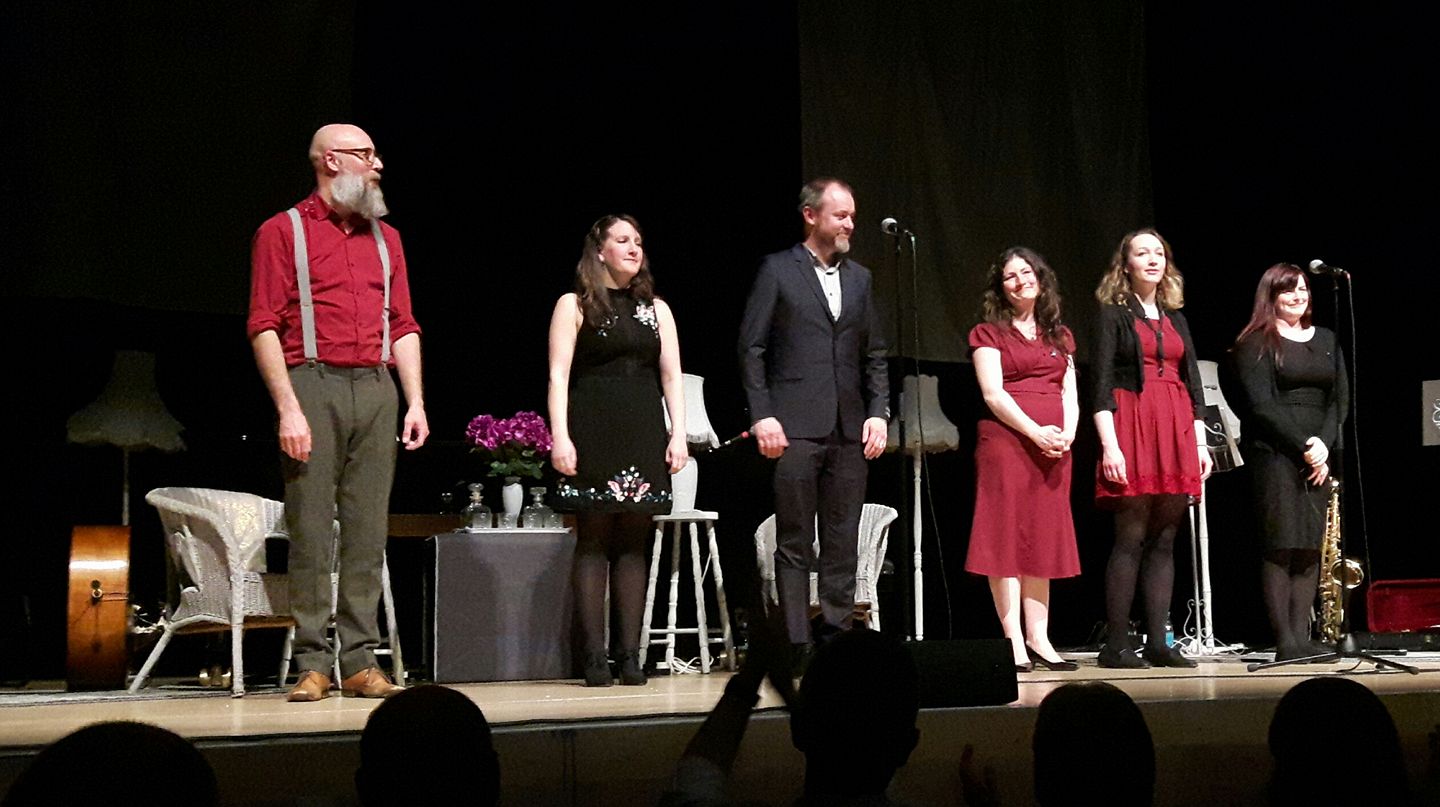 For these shows The Unthanks are a more streamlined setup which serves the songs best – Becky, Rachel & Adrian McNally on piano, Niopha Keegan on strings, Chris Price on bass and water effects plus newbie Faye MacCalman on clarinet and sax. The backing to Rachel & Becky’s vocals are at times sparse and atmospheric but also complex and rising with the words.