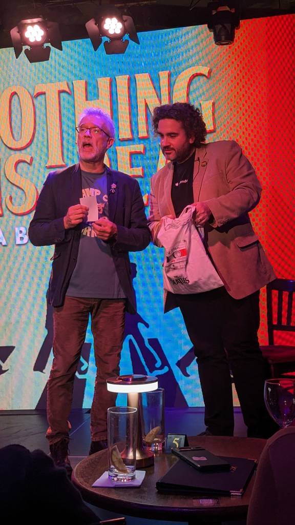So jumping to last Wednesday night in a club in London, a stones throw from fabled music mecca Denmark Street and perhaps a world beating javelin toss from Paul McCartney’s Soho Square MPL offices. A pair of tickets were delivered there earlier just in case he fancied flying back from Mexico on his day off just to find out exactly what he did in the sixties. SPOILER – he did….not show up. Yet an audience of Beatles nerds and nerdesses sold the place out months in advance. So it’s just as well Paul didn’t show as he’d probably have to stand at the back or sit on the pinball machine
